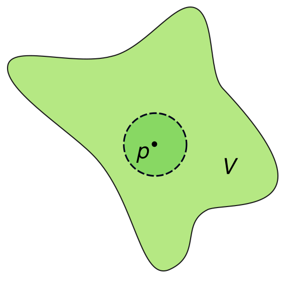 - Множество называется окрестностью точки , если существует открытое множество такое, что .