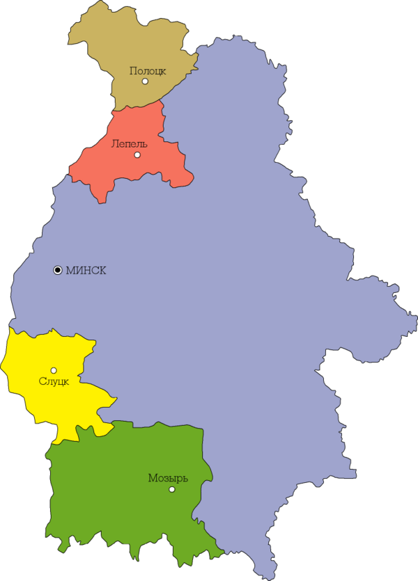 Окружное деление, охватывающее всю территорию БССР, было введено в 1924 году и просуществовало (с изменениями) до 1930 года.