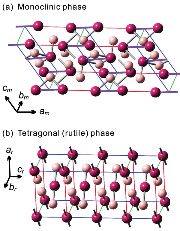 При температуре 67 или 68 °C происходит переход в β-фазу тетрагональной сингонии, пространственная группа P 41/mnm, параметры ячейки a = 0,454 нм, c = 0,285 нм, Z = 2, d = 4,653 г/см3, тип рутила. Энтальпия перехода 3,1 кДж/моль.
