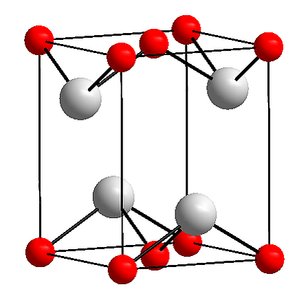 Тёмно-синие (почти чёрные) кристаллы, тетрагональная сингония, структура типа РbО (а = 0,3802 нм, с = 0,4837 нм, Z = 2, пространственная группа P42/nmm). При давлении выше 90 ГПа (900 тыс. атм) переходит в ромбическую модификацию (а = 0,382 нм, b = 0,361 нм, с = 0,430 нм, Z = 2, пространственная группа Рm2n).