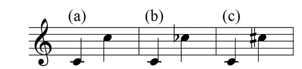 - чистая октава — интервал в восемь ступеней и шесть тонов, простейшее соотношение двух звуков различной высоты, у которых частота колебаний относится как два к одному, то есть верхний звук имеет вдвое бо́льшую частоту колебаний, чем нижний звук; обозначается ч. 8