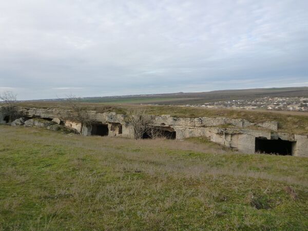 Южнее села также находится комплекс Микояновских каменоломен, которые включают в себя несколько небольших выработок. Входы ориентированы на юг, а выработки велись на север. Наиболее крупные из них это Октябрьская-1 длиной 355 м и Октябрьская-2 длиной 170 м. Полоса разработок, в которой находятся около 15 входов, протянулась на 700 м в широтном направлении. Распространение разработок вглубь массива незначительное, достигает 30–40 м. С учётом наклона пластов, выработки имеют ярко выраженный уклон. Восточно-Микояновские каменоломни находятся в 1,5 км на восток от Октябрьских каменоломен, на границе села Октябрьского и микрорайона Мичурино города Керчь. Включают в себя две небольшие выработки, расположенные в левом склоне Бигельского ущелья. Первая представляет собой небольшую пильную штольню, выводящую в прямоугольный зал с большим целиком посередине, общая длина около 100 м. Вторая – прямая, сложного сечения, рубленая выработка длиной 20 м[37].