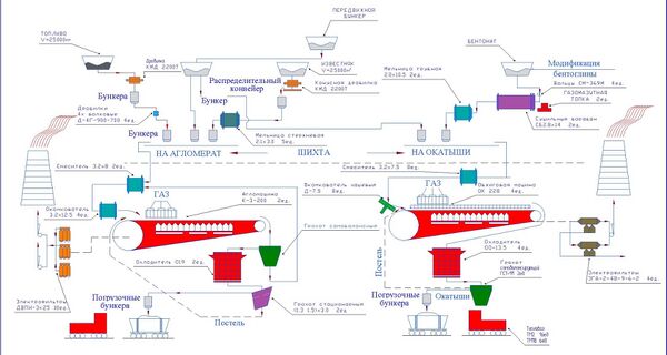 - при брикетировании — брикеты разной геометрической формы и необходимых габаритов и массы. Из общего производства окускованного сырья агломерат занимает около 70 %, окатыши 28 % и брикеты 2 %.