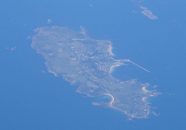 Третий по величине (7,9 км², размеры приблизительно 5х3 км) остров Нормандских островов, расположенный в проливе Ла-Манш на расстоянии 160 км к югу от Великобритании и 32 км к западу от Франции.