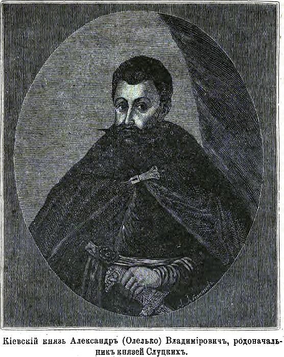 "Александр (Олелько) Владимирович прибыл в 1442 году в Вильну и обратился с просьбою к великому литовскому князю Казимиру Ягайловичу о восстановлении прав на отцовское наследие. Тот исполнил просьбу своего двоюродного брата и выделил ему Киев с Житомиром и Овручем… Олелько Владимирович женат был на дочери Великого князя московского Василия Дмитриевича, Анастасии, отличался выдающимся умом, стойкостью, храбростью и пользовался всеобщим уважением. После смерти Витовта, многие русские князья предлагали избрать его великим князем литовским. Во внутреннем управлении государством за Олелька Владимировича русские порядки, язык и люди получили прежнее значение. Даже «Судебник» Казимира почти совершенно соответствовал «Русской правде… По ходатайству Олелька Казимир Ягайлович утвердил власть русского митрополита Ионы над православными епархиями Великого княжества Литовского. Олелько владел своим уделом до самой смерти своей (1455 год)»[1].