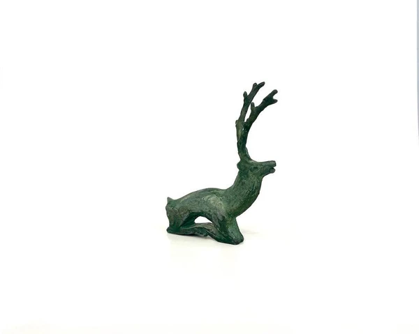 Скульптура представляет собой трёхмерное изображение лежащего оленя без подножия. Поза животного характеризуется вытянутой вертикальной шеей и головой, обращённой вверх. Длинные рога, превышающие в длине голову более чем в два раза, слегка загибаются вперёд. Конечности подогнуты под туловище, а короткий хвост поднят вверх. Размер изделия составляет 8,2×9,5 см.