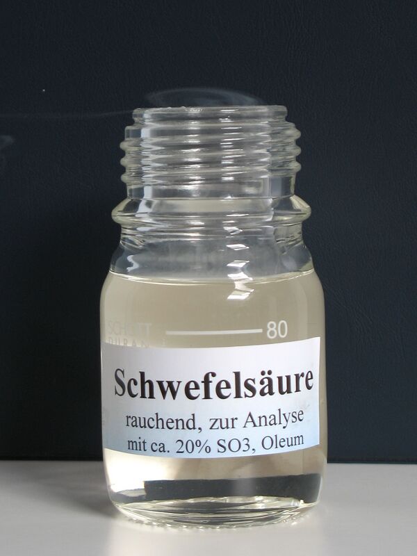 О́леум (от лат. Oleum - масло) — раствор серного ангидрида SO3 в серной кислоте H2SO4.