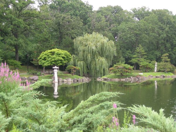 Руководителем проекта стал директор выставки Даниел Бёрнем, Фредерик Олмстед был назначен ответственным за преобразование ландшафта[комм 25]. Олмстед частично восстановил свои чертежи более чем двадцатилетней давности и на основе их создал новый план преобразования территории. Согласно проекту была прорыта сеть рукотворных лагун и каналов, отдалённо напоминающие венецианские. Между водоёмами возвели искусственный холмистый остров, на котором будущие посетители могли отдохнуть в тишине природы. Каждый выставочный павильон был оборудован дополнительным входом со стороны акватории, по которой курсировали небольшие, стилизованные под красочные азиатские сампаны, электрические катера[комм 26]. В тёплые месяцы года Олмстед занимался поиском подходящих околоводных растений вдоль рек и озёр Иллинойса и Висконсина: ивы, рогоза, камыша, жимолости, которые затем высаживал по берегам каналов[156].