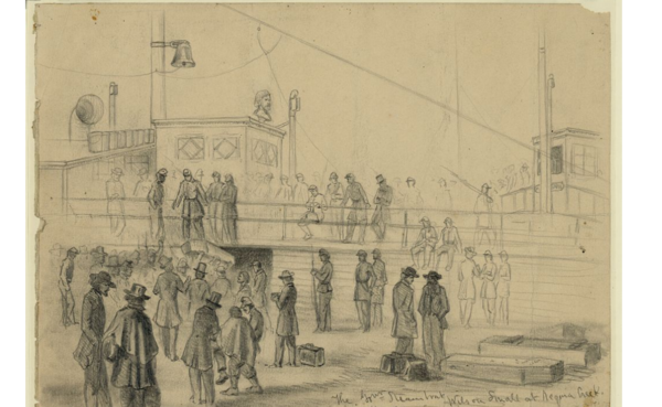 С началом Гражданской войны (1861—1865) Олмстед начал искать возможность принять в ней участие на стороне Союза, несмотря на свою покалеченную ногу. В июне 1861 года он принял предложение священника Генри Беллоуза занять должность главного администратора (англ. chief executive) в «Санитарной Комиссии», созданной с целью организации первой помощи раненым и больным военнослужащим[комм 5][67]. Инспекция палаточных лагерей к югу от Вашингтона показала отсутствие в них необходимых санитарных условий: добровольцы были одеты во что попало, отдыхали скученно в грязных палатках либо на голой земле, питались скудными и испорченными продуктами[68]. Опрос ополченцев после поражения в битве при Булл-Ране показал слабую организацию наступления северян: одна часть военнослужащих перед началом боя страдала от недостатка воды, пищи и сна, другая бросилась в бой сразу после утомительного марш-манёвра[69].