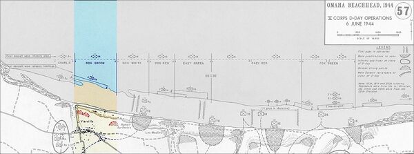 Объекты береговой обороны немцев должны были быть зачищены через 2 часа после начала высадки, тогда штурмовые отряды должны были быть реорганизованы в батальоны и продолжать бой. Через три часа после высадки должны были быть открыты мосты, через которые осуществлялось бы транспортное движение с пляжа. К концу дня силы, высадившиеся на Омахе, должны были создать плацдарм глубиной в 8 км, связанный с британской 50-й дивизией, высадившейся на Голд-Бич на востоке, и выйти на позицию, позволяющую на следующий день отправиться к Исиньи, чтобы соединиться с 7-м американским корпусом, высадившимся на Юта-Бич к западу от Омахи[18].