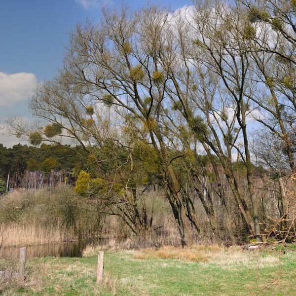 Паразитирует на очень многих древесных растениях: тополях, клёнах, соснах, ивах, берёзах, лжеакациях и на разнообразных плодовых деревьях. Поселяется на верхушке дерева или на его ветвях и разрастается зелёным, в большинстве случаев густым кустом.