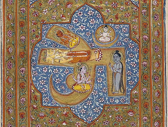 В соответствии с ведийским наследием считается, что звук ом был первым проявлением не явленного ещё Брахмана, давшим начало воспринимаемой Вселенной, произошедшей от вибрации, вызванной этим звуком[2][6].