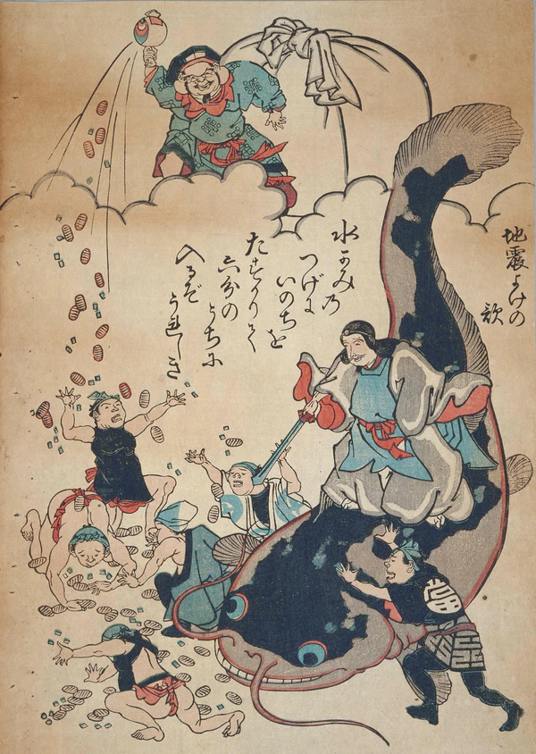 Отношение к сому населения Японии было двояким. Бедные слои населения верили в то, что сом является карой богатым, нажившим свои сокровища бесчестными способами. Землетрясения, которые создавал сом, по верованиям многих, разрушали не только сам город, но и условия жизни, и равняли бедных с богатыми.