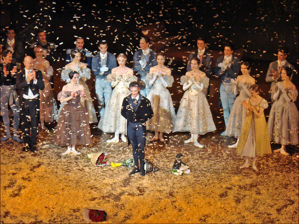 В СССР спектакль был представлен в 1972 году во время гастролей труппы Штутгартский балет[1]. В России балет впервые поставлен 12 июля 2013 года на Исторической сцене Большого театра в Москве. В премьерной постановке ГАБТа были задействованы Владислав Лантратов (Онегин), Семён Чудин (Ленский), Ольга Смирнова (Татьяна), Анна Тихомирова (Ольга), Анастасия Винокур (няня), Виталий Биктимиров (князь Гремин)[5][6].