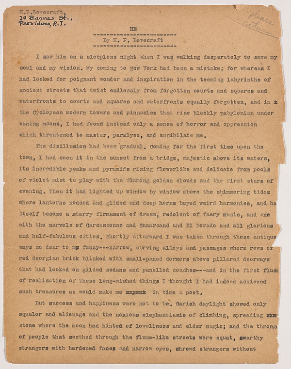 - H. P. Lovecraft, "He", Dagon and Other Macabre Tales, p. 266.