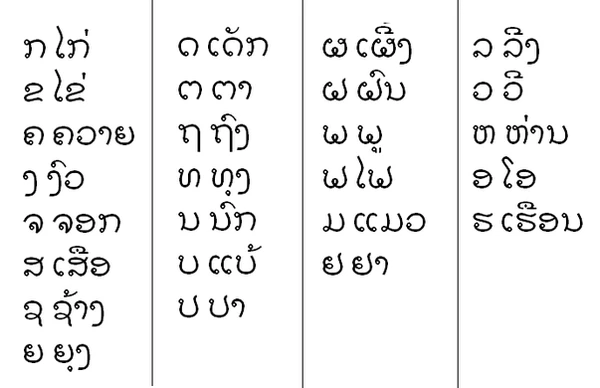 - Лаосский алфавитАрхивная копия от 18 января 2012 на Wayback Machine
