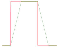- Насыщение — ограничение диапазона возможных значений выходного напряжения. Обычно выходное напряжение не может выйти за пределы напряжения питания. Насыщение имеет место в случае, когда выходное напряжение «должно быть» больше максимального или меньше минимального выходного напряжения. ОУ не может выйти за пределы, и выступающие части выходного сигнала «срезаются» (то есть ограничиваются).