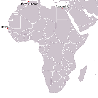 Оран, Мерс-эль-Кебир Портсмут, Плимут Великобритания Дакар, Александрия |
