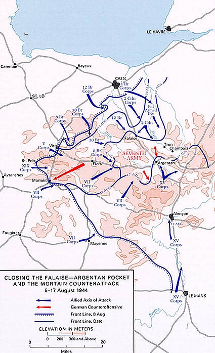 14 августа, канадские войска начали операцию Трактэбл совместно с американскими войсками севернее Шамбуа. 19 августа бригада 1-й польской бронетанковой дивизии соединилась с силами 90-й пехотной дивизии. В результате около 50000 солдат немецких войск оказались в «мешке». К 21 августа попытки немцев деблокировать кольцо было сорвано, и все немецкие войска в «мешке» сдались союзным войскам, что фактически положило конец существованию немецкой 7-й армии.