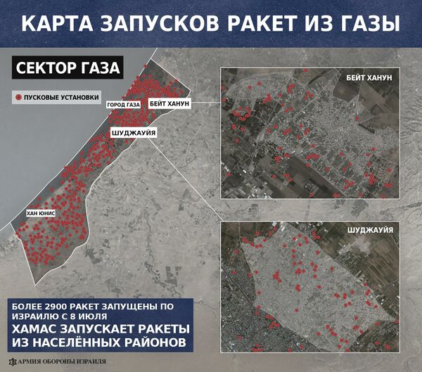 Пресс-служба ЦАХАЛа передала в СМИ отчёт — «Использование ХАМАСом гражданских и медицинских учреждений для террора», в котором указывается, что с момента срыва ХАМАСом перемирия (19 августа) по Израилю из сектора Газа выпущено свыше 570 ракет, при этом большинство из них, по мнению израильтян, выпускались боевиками с территории различных гражданских объектов[406].