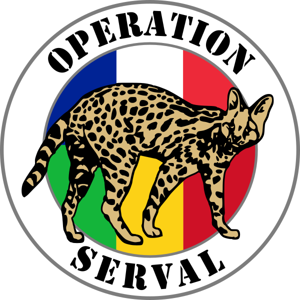 Операция «Сервал»[11] (фр. Opération Serval) — операция французских вооружённых сил в Мали против восставших на севере страны туарегов и исламских террористических группировок[12]. По заявлениям французских официальных лиц, интервенция предпринята по просьбе правительства страны с целью остановить продвижение исламских экстремистов в направлении столицы Бамако, обеспечить безопасность нескольких тысяч французских граждан в Мали, сохранить территориальную целостность страны и, в конечном счете, освободить от исламистов север страны[13][14][15]. Сроки окончания операции не были установлены и, по заявлению французского руководства, она должна была продолжаться до тех пор, пока в этом будет необходимость[16]. Операция объявлена законченной к 14 июля 2014 года, присутствие французских сил в регионе продолжается в рамках операции Barkhane[17].