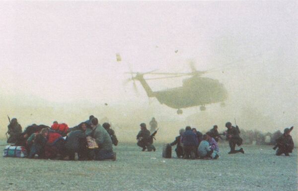 По первоначальному плану предусматривалась посадка вертолётов на территории посольства США под защитой морских пехотинцев и прикрытием боевых вертолётов «Apache»[18]. В 15:21 штаб в Дубровнике через один из самолётов C-160 Transall связался с вертолётной группой и сообщил, что американские вертолёты подверглись интенсивному обстрелу с земли (в том числе с использованием противотанковых ракет)[24]. В результате командование США сочло ситуацию слишком опасной и приняло решение о приостановлении эвакуации собственных граждан[7]. Полковник Главатц приказал продолжить операцию[18].