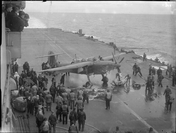 Королевский флот собрал значительные силы. Основной ударной силой являлись два крыла палубных торпедоносцев и пикирующих бомбардировщиков Fairey Barracuda: 8-е авиакрыло состояло из 827-й и 830-й эскадрильи морской авиации, 52-е авиакрыло — из 829-й и 831-й эскадрильи морской авиации. Обычно 8-е авиакрыло базировалось на авианосце «HMS Furious», а 52-е авиакрыло — на «HMS Victorious». Для обеспечения лучшего взаимодействия между экипажами и эскадрильями Генри Мур приказал разместить одну эскадрилью из каждого авиакрыла на другом авианосце[28].