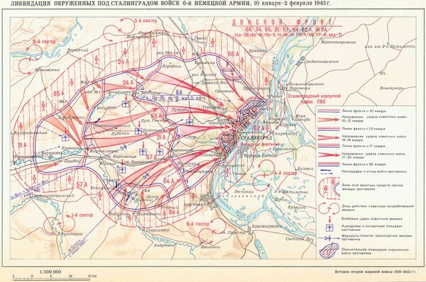 В ходе Сталинградской наступательной операции были уничтожены две немецкие, разгромлены две румынские и одна итальянская армии. Уничтожено 32 дивизии и три бригады, разгромлены 16 дивизий. Войска стран «Оси» потеряли более восьмисот тысяч человек[25].