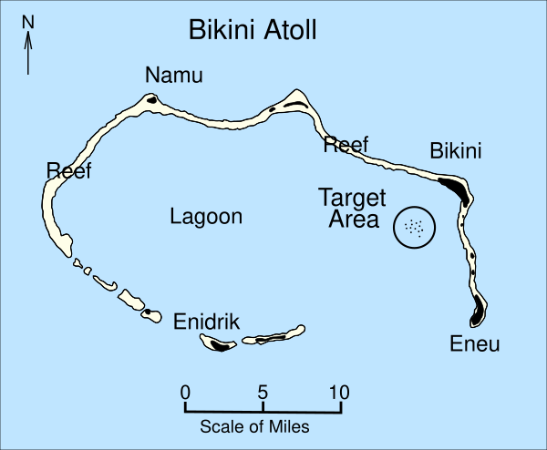 - Wikimapia link Архивная копия от 17 мая 2020 на Wayback Machine showing Bikini Atoll and, particularly, the Castle Bravo crater.