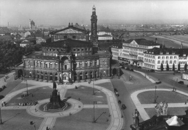 Опера продолжала работать и во время Второй мировой войны. Только 31 августа 1944 года работа театра была остановлена. Последней постановкой стал «Вольный стрелок» Карла Марии фон Вебера[11]. Во время бомбардировки Дрездена 13 февраля 1945 года, при которой был практически полностью разрушен центр города, сильно пострадало и здание оперы, целыми остались лишь наружные стены и некоторые скульптуры.