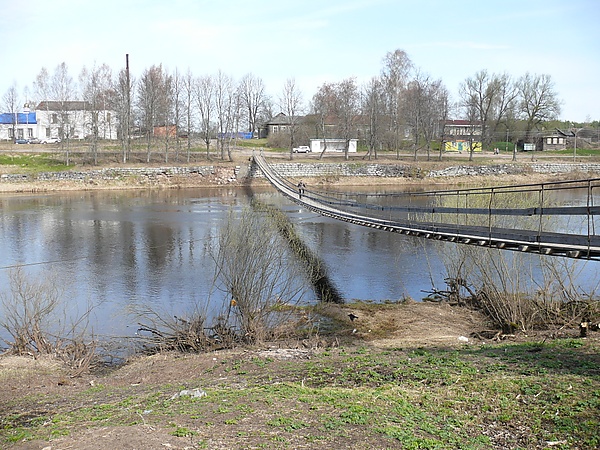 - Большой каменный мост и каменная 800-метровая набережная 1824 года постройки с остатками причальных тумб, на которой происходила посадка пороговых лоцманов и рулевых команд на суда каравана для проскока Боровицких порогов по сбросу воды из озера Мстино.[6]