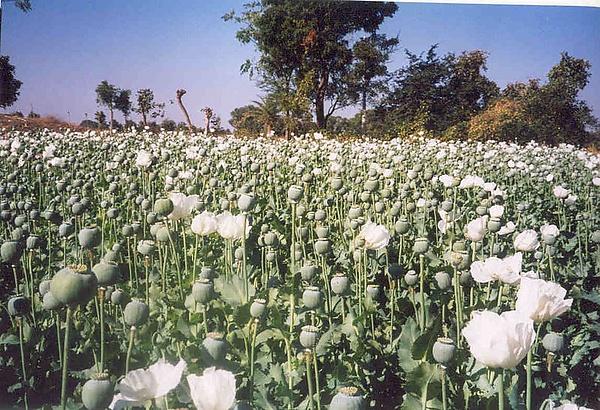 Основные посевные площади опийного мака сосредоточены в т. н. «Золотом треугольнике» (Северный Таиланд, Лаос, Мьянма), а также в Афганистане. По данным ежегодного доклада управления ООН по наркотикам и преступности, площадь посева опийного мака в Афганистане в 2000-х годах превосходила плантации коки в Колумбии, Перу и Боливии, вместе взятых, и составляла 193 000 га (на 2006 год в Афганистане производилось 92 % от его всемирного производства равного 6630 тонн)[4]. Сбор урожая опиумного мака в 2007 году возрос до 8200 тонн — это в 2,4 раза больше, чем в 2002 году, когда коалиционные войска начали боевые действия против армии талибов. В то же время, по данным ООН, в северной части страны, находившейся под контролем проамериканского правительства, посевы мака сокращались, а сбор зерновых увеличивался, тогда как в южных районах Афганистана, где были сильны позиции «Талибана», складывалась противоположная ситуация[5].