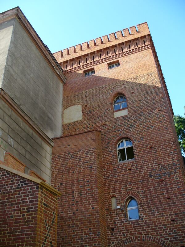 Башня Верхнего замка в Ополе — кирпичная башня с готическим планированием с использованием зендрувки (частично остекленевший при обжиге кирпич), выложенной ромбом. Здание было построено на плане прямоугольника и сначала было трехэтажным. На восточном фасаде в нишу встроен портал древней въездной брамы. В 1844 году к башне был пристроен четвертый этаж, увенчанный неоготическим кренеляжем. Кроме того, была осуществлена реновация в этом стиле фрагмента фортификаций с бартизаной.