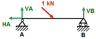 Неподвижная (шарнирная) опора держит элемент по трём степеням свободы. Моменты не передаются. Как видно на изображении, в неподвижной опоре могут возникать горизонтальные и вертикальные силы реакции опоры[1].
