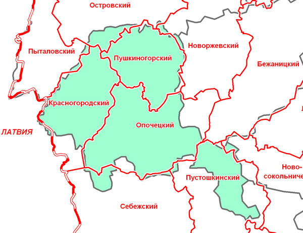 - Полянская волость (с. Облецово — на территории современной Полянской волости Пушкиногорского района)