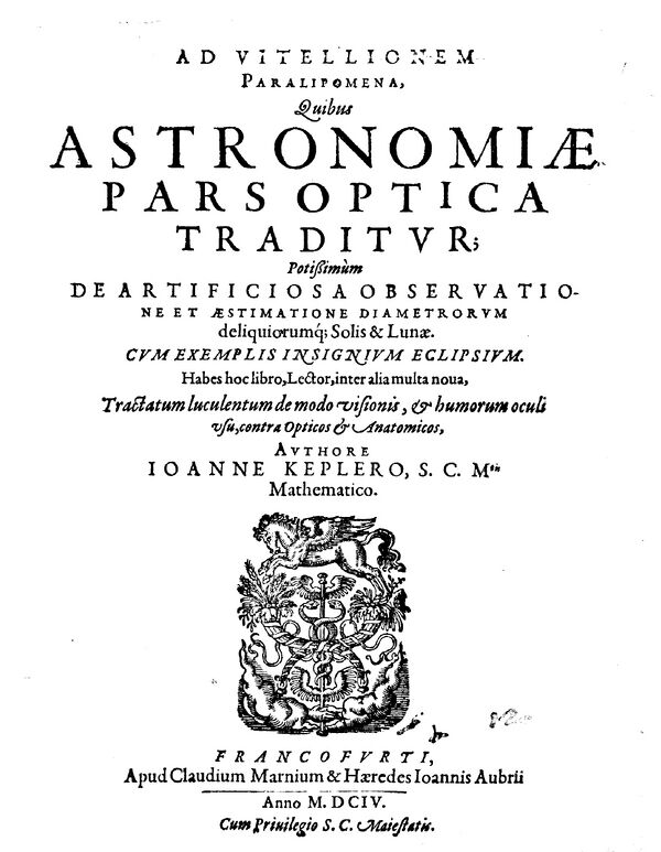 В начале 17 века Иоганн Кеплер дополнил геометрическую оптику в своих трудах, рассмотрев линзы, отражение плоскими и изогнутыми зеркалами, принципы камер-обскур, закон обратных квадратов, регулирующий интенсивность света, и оптические объяснения астрономических явлений, таких как лунные и солнечные затмения и астрономический параллакс . Он также смог правильно определить роль сетчатки как фактического органа, записывающего изображения, и наконец получил возможность с научной точки зрения количественно оценить эффекты различных типов линз, которые создатели очков наблюдали за предыдущие 300 лет[25]. После изобретения телескопа Кеплер изложил теоретические основы того, как они работали, и описал улучшенную версию, известную как телескоп Кеплера, с использованием двух выпуклых линз для получения большего увеличения[26].