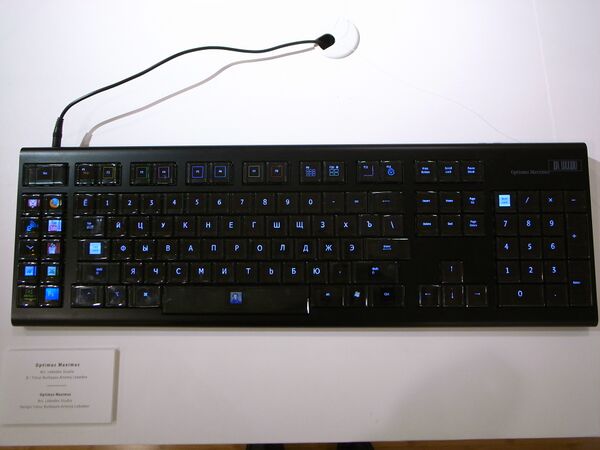 По-разному подписывать клавиши для пользователей сложных игр и специализированного ПО — давняя мечта, и «Оптимус» решил её самым исчерпывающим и самым дорогим образом — экранами под клавишами. Впрочем, есть и более дешёвые способы это сделать.