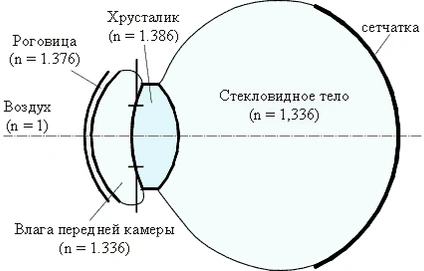 Оптическую систему глаза составляют роговица, водянистая влага передней камеры, хрусталик и стекловидное тело. Ключевую роль в ней играет хрусталик, который для настройки на резкость изменяет форму — явление аккомодации. Изменение формы приводит к изменению фокусного расстояния хрусталика.