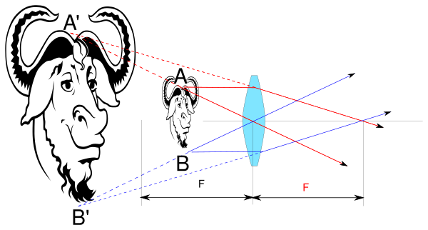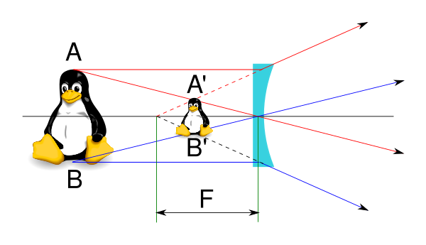 - Мнимое изображение получается, когда лучи от какой-либо точки после прохождения оптической системы образуют расходящийся пучок. Если их продолжить в противоположную сторону, они пересекутся в одной точке. Совокупность таких точек образует мнимое изображение[3]. Такое изображение невозможно наблюдать на экране или зарегистрировать на светочувствительной поверхности, однако можно преобразовать в действительное с помощью другой оптической системы.
