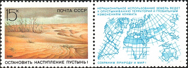 В 1994 году в Париже была принята Конвенция Организации Объединённых Наций по борьбе с опустыниванием в тех странах, которые испытывают серьёзную засуху и/или опустынивание, особенно в Африке (The United Nations Convention to Combat Desertification in Those Countries Experiencing Serious Drought and/or Desertification, Particularly in Africa, UNCCD). Её задача — объединение усилий государственных и общественных организаций на международном, региональном, национальном и местном уровнях по борьбе с опустыниванием, деградацией земель и смягчению последствий засухи[38].