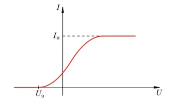 При выходе в область положительного напряжения действие электрического поля сменяется с задерживающего на разгоняющее. Наконец, ток достигает своей предельной величины , называемой током насыщения. В этой точке анод захватывает все электроны, покинувшие катод, и ресурсов для дальнейшего увеличения фототока не остаётся.