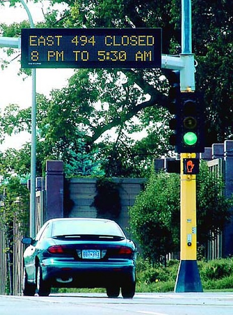 - Информирование участников движения о транспортной ситуации и маршрутах объезда перегруженных участков с помощью многопозиционных дорожных знаков, световых табло со сменной информацией, радио и пр.