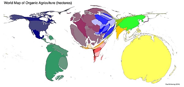 К 2019 году на Земле более 70 млн га используются в соответствии с принципами органического сельского хозяйства, что составляет приблизительно 1,4 процента от общего объёма сельскохозяйственных угодий в мире[6]. Причём более половины этого объёма приходится на Австралию[7].