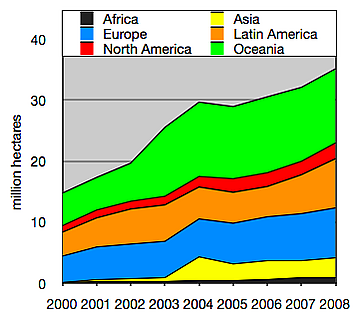 В 1972 в Версале была основана Международная Федерация органического сельскохозяйственного движения (IFOAM), поставившая своей целью распространение информации и внедрение органического сельского хозяйства во всех странах мира. С начала 1990-х растут мировые рынки, связанные с органическим сельским хозяйством, достигнув в 2012 году 63 миллиардов долларов во всём мире[8]. Этот спрос привёл к аналогичному увеличению сельскохозяйственных угодий с органическим управлением, которое с 2001 по 2011 год увеличивалось на 8,9 %. ежегодно[9].