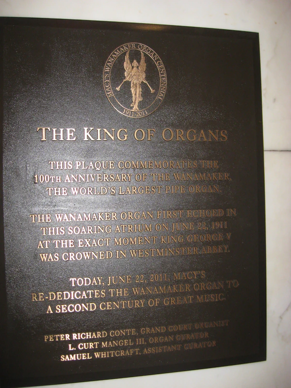 - в органной мастерской Уонамейкера изготовлена нынешняя консоль с шестью мануалами и сотнями регистровых рукояток.