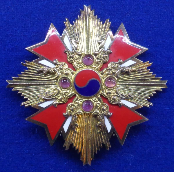 - Grand Gwanghwa Medal — орденский знак на чрезплечной ленте и звезда на левой стороне груди.