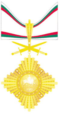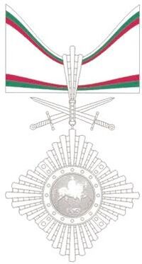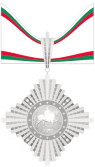 - вторая степень: миниатюрное изображение Мадарского всадника сверху розетки с серебряными лучами; носится на шее.