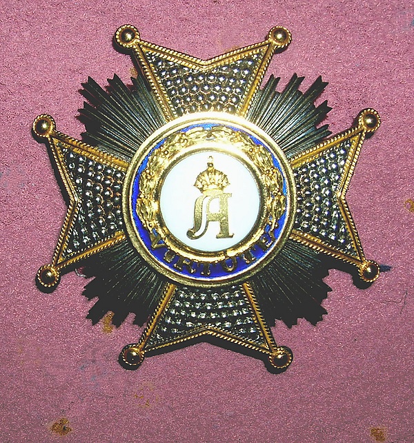 - Большой крест — звезда с короной на ленте через правое плечо и знак на левой стороне груди (военная версия имеет два скрещенных меча).
