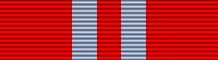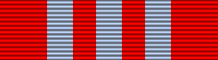 Лента ордена красного цвета с двумя серыми полосками, отстающими от края.