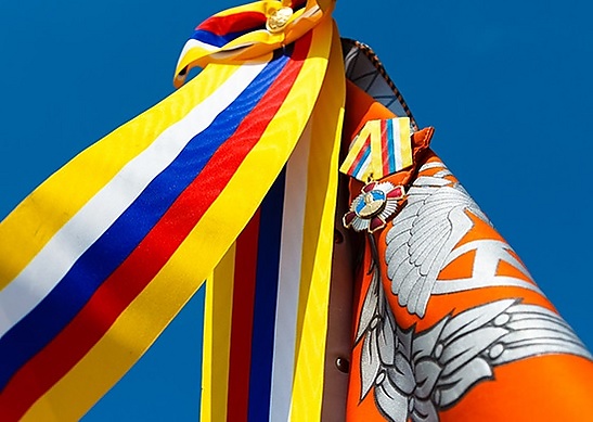 При награждении орденом воинских частей, знак и лента ордена крепятся на лицевую сторону Боевого знамени части.
